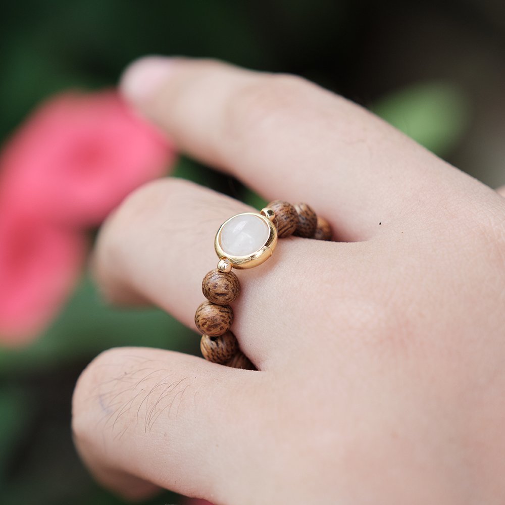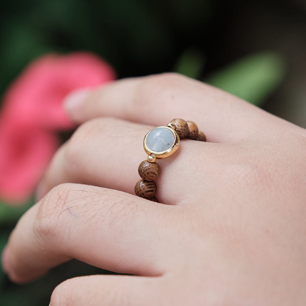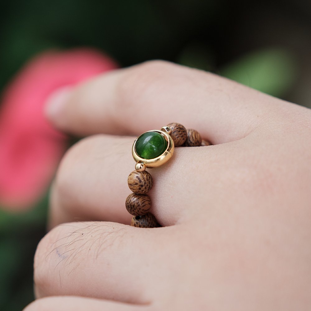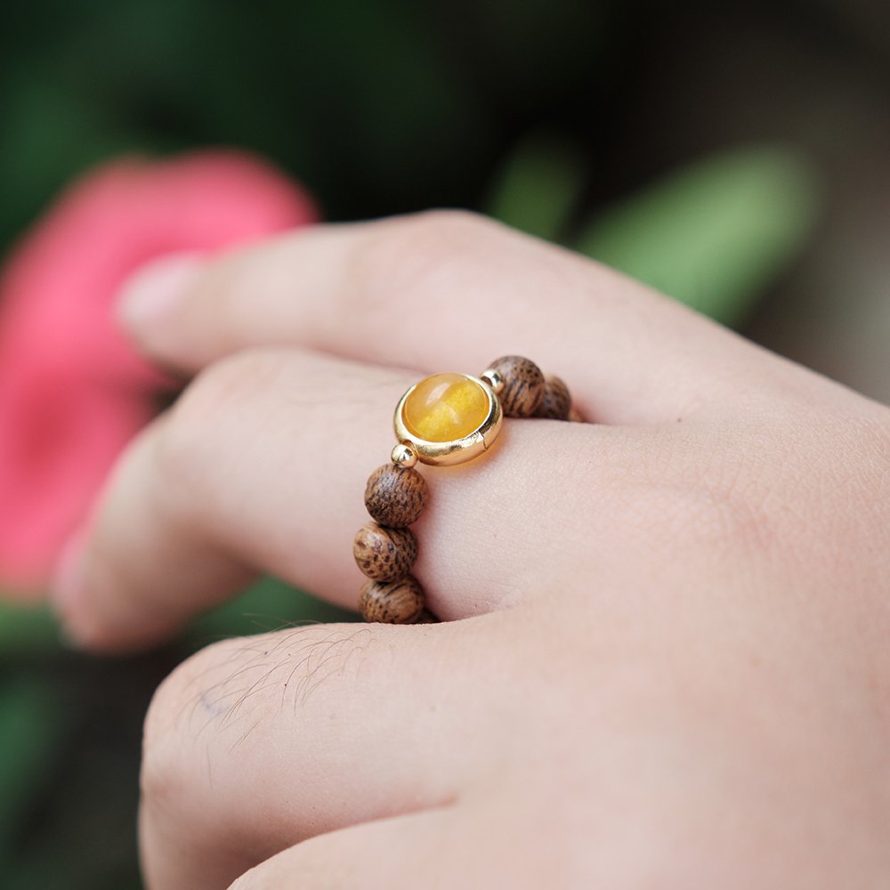 NHẪN TRẦM HƯƠNG DANA mix charm đá theo bản mệnh, phù hợp Nam /nữ.