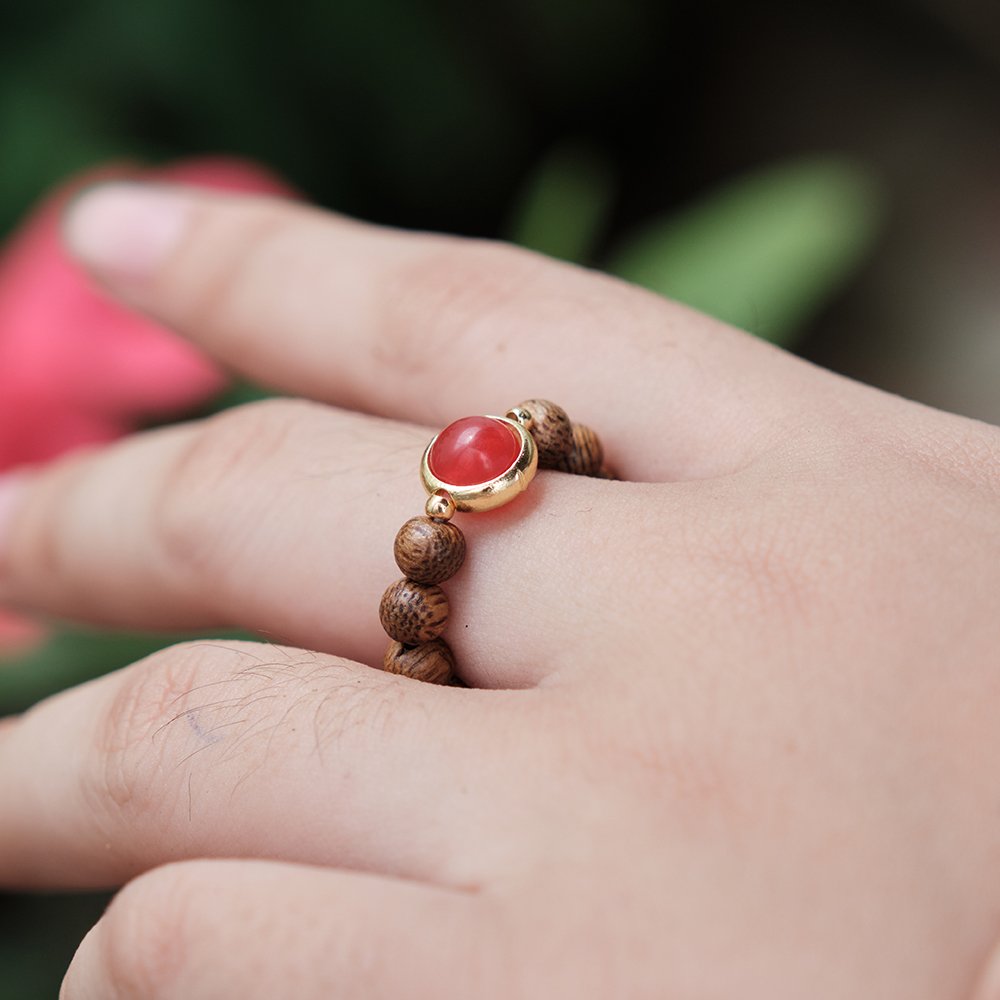 Nhẫn Trầm Hương Phối Đá Mã Não Trầm Tốc Vườn DANA TRẦM HƯƠNG