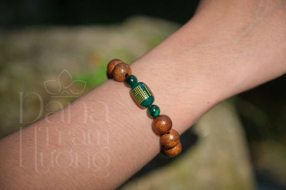 Tên sản phẩm: Vòng tay trầm hương -Trầm tốc vườn 10li – lu đá bát nhã tâm kinh