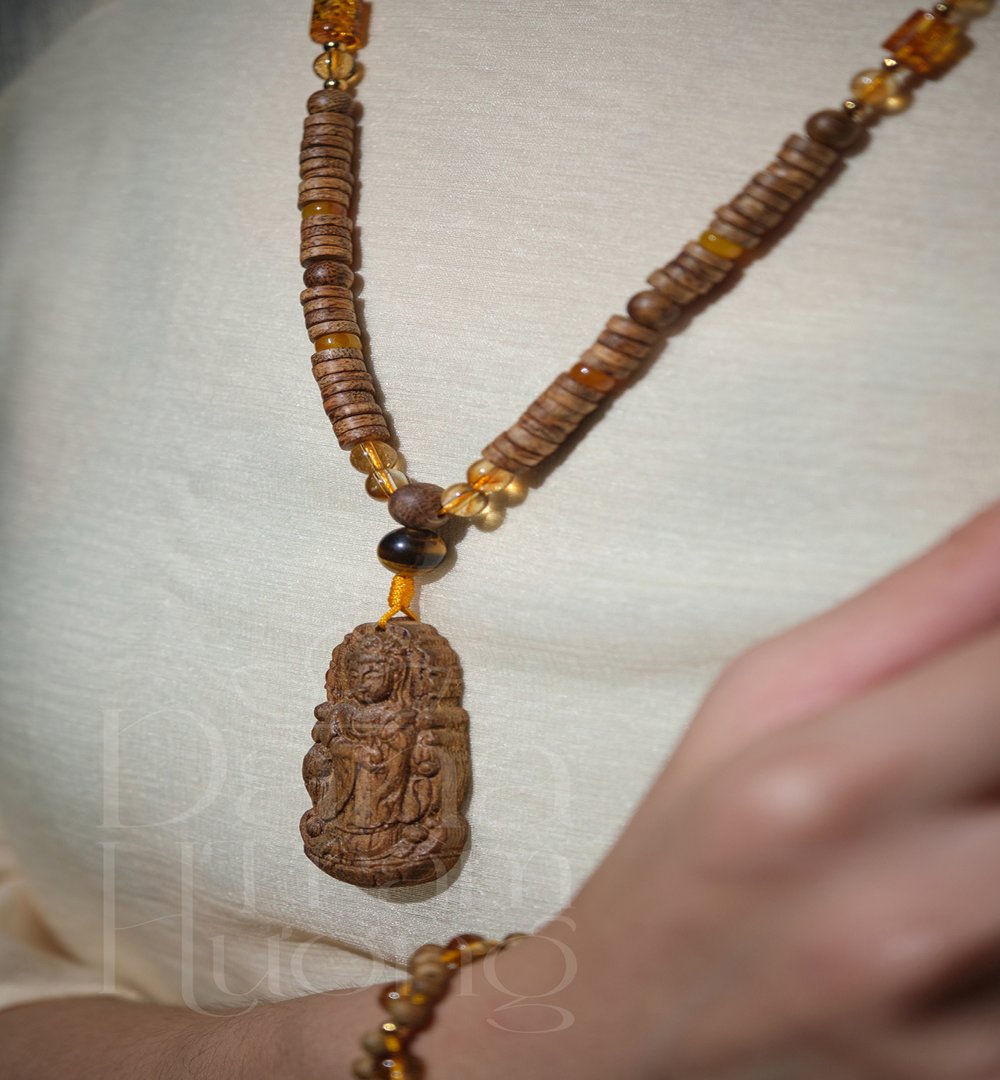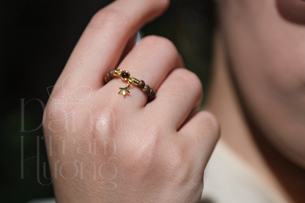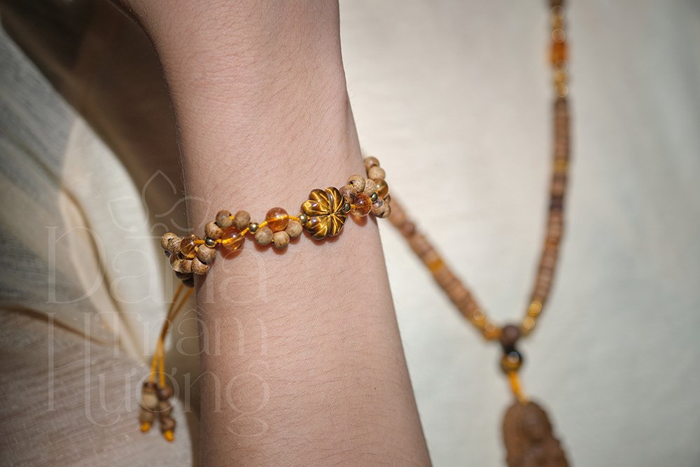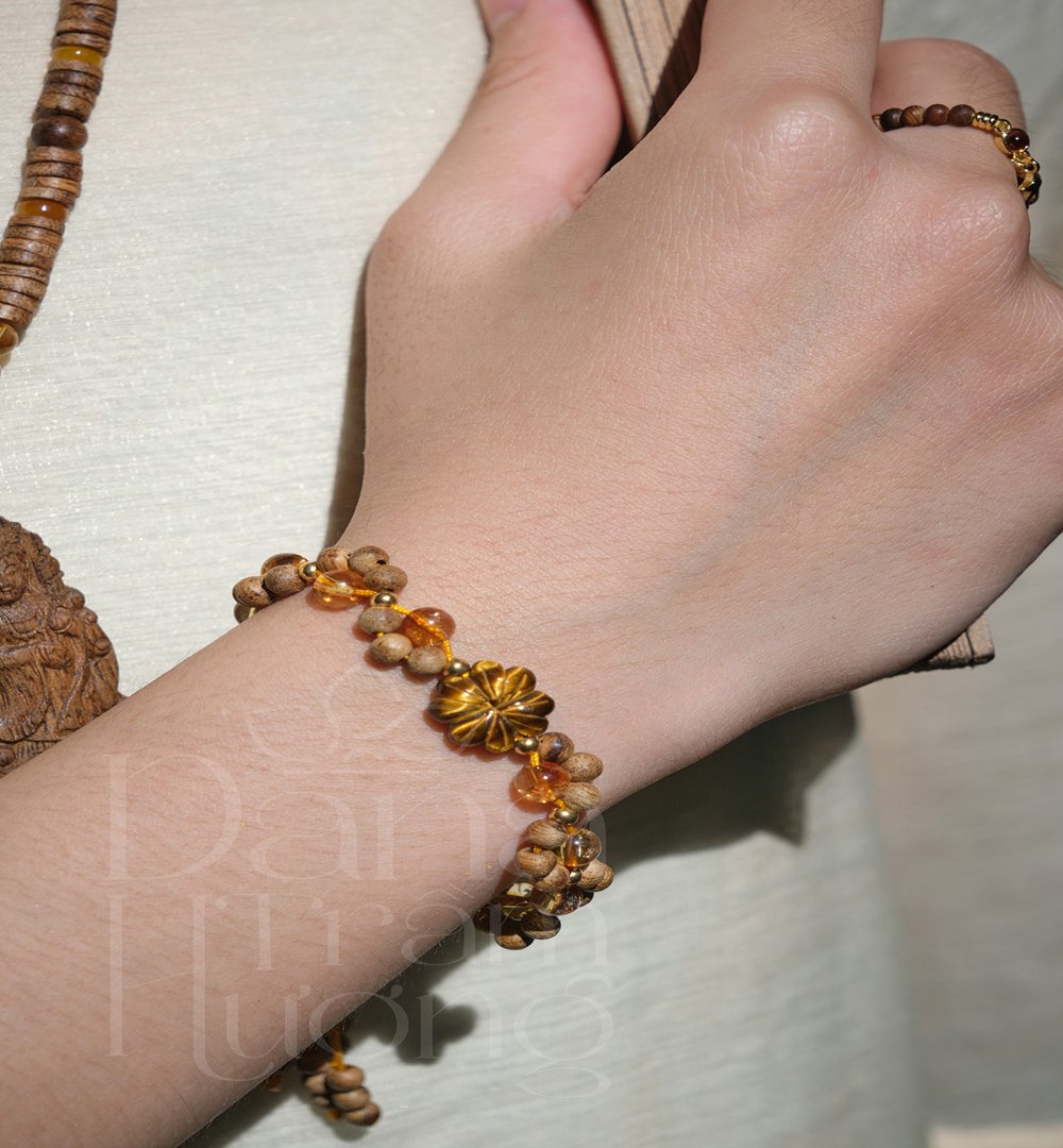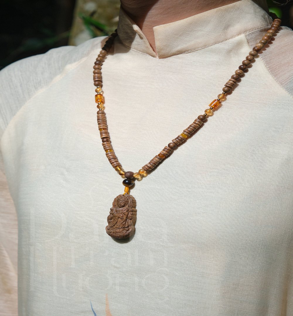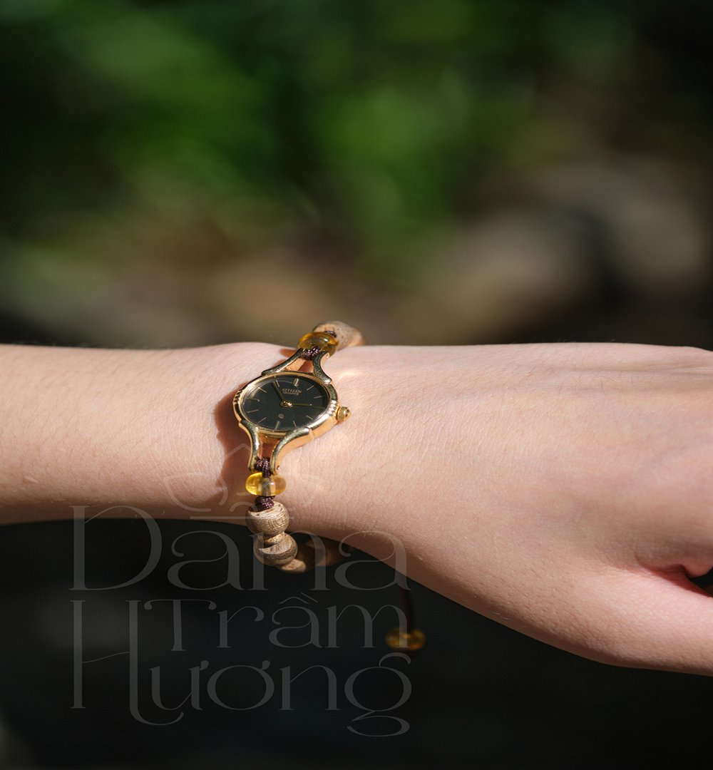 Tôi tìm thấy Bộ Trang Sức Trầm Hương Sắc Ngũ Hành – sự kết hợp giữa trầm hương thiên nhiên và những viên đá phong thuỷ tượng trưng cho Kim, Mộc, Thuỷ, Hoả, Thổ . Tôi biết, đây không chỉ là một món trang sức, mà còn là một lời nhắc nhở về cội nguồn, về những giá trị bền vững của người việt. Mỗi màu sắc đều mang theo một linh khí của thiên nhiên, một nét tính cách đặc trưng của con người Việt