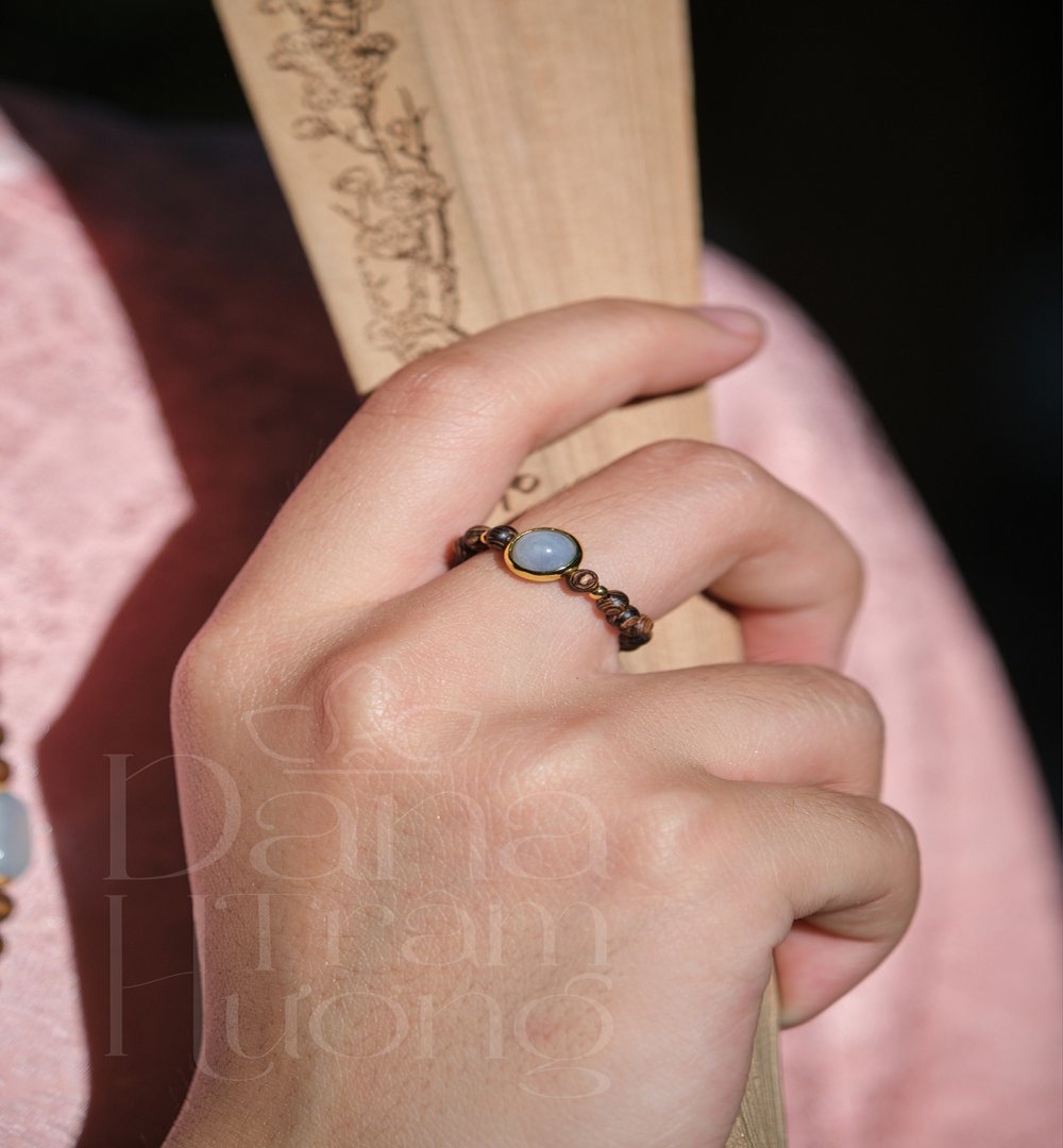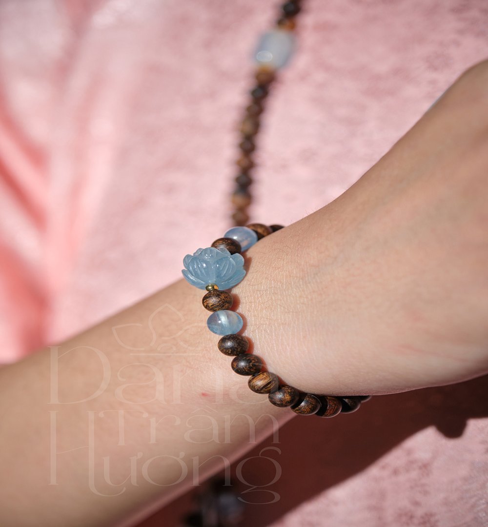 Tôi tìm thấy Bộ Trang Sức Trầm Hương Sắc Ngũ Hành – sự kết hợp giữa trầm hương thiên nhiên và những viên đá phong thuỷ tượng trưng cho Kim, Mộc, Thuỷ, Hoả, Thổ . Tôi biết, đây không chỉ là một món trang sức, mà còn là một lời nhắc nhở về cội nguồn, về những giá trị bền vững của người việt. Mỗi màu sắc đều mang theo một linh khí của thiên nhiên, một nét tính cách đặc trưng của con người Việt